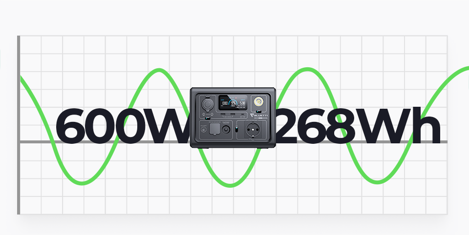 - L'onduleur à onde sinusoïdale pure de 600 W CA, la capacité de 268 Wh