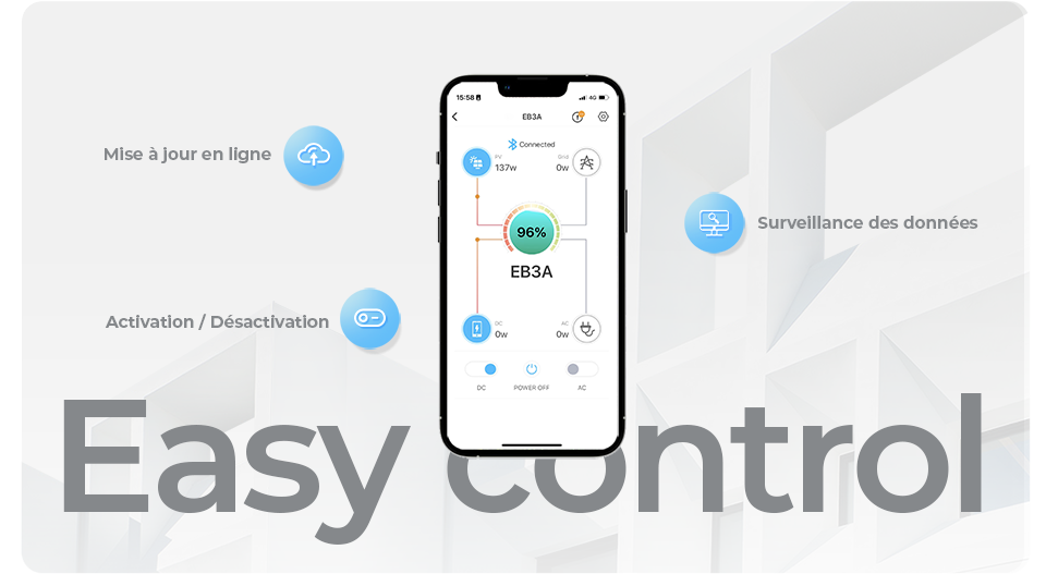 - Le système de contrôle intelligent et moniteur dans l'application BLUETTI