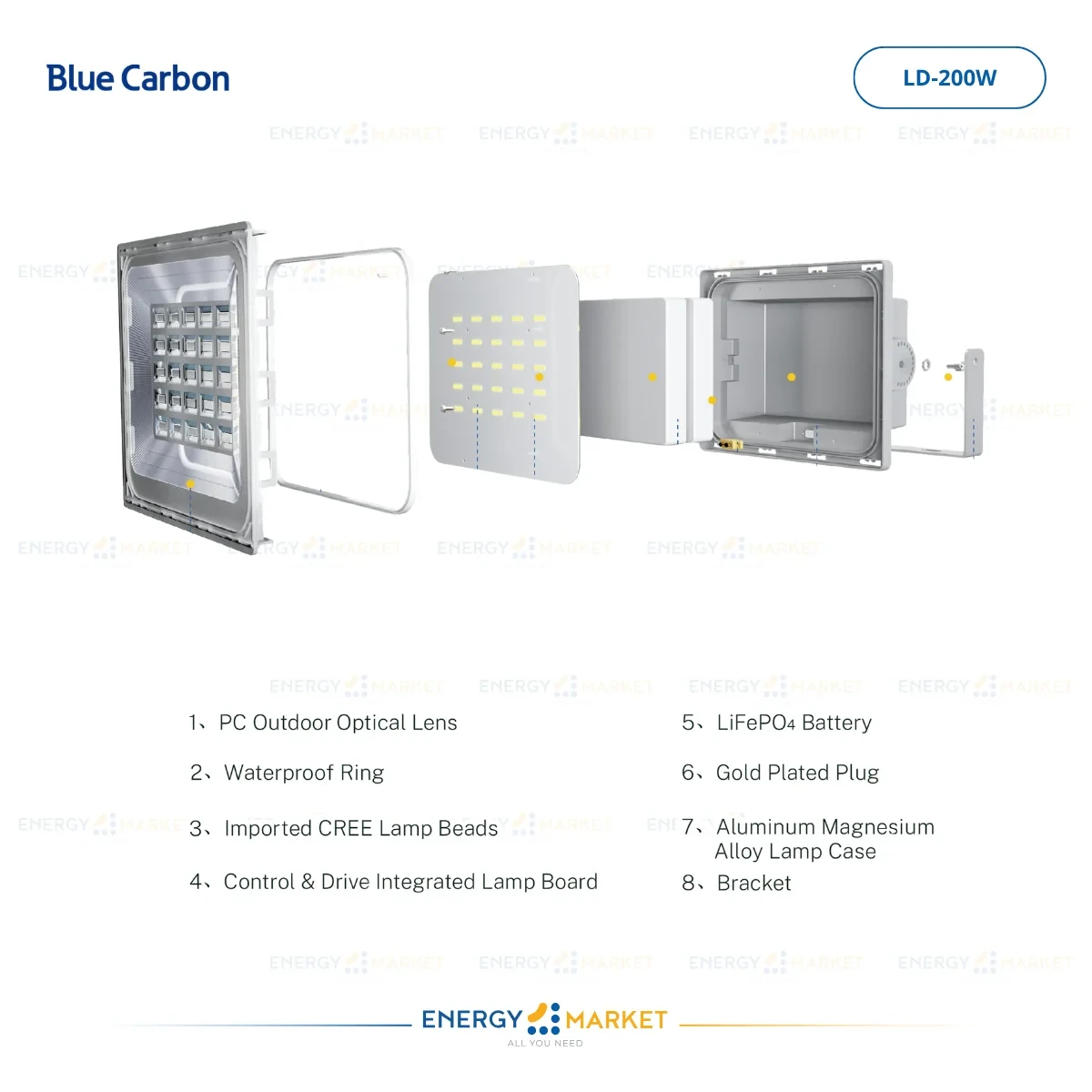 Projecteur Solaire Blue Carbon LD 200W