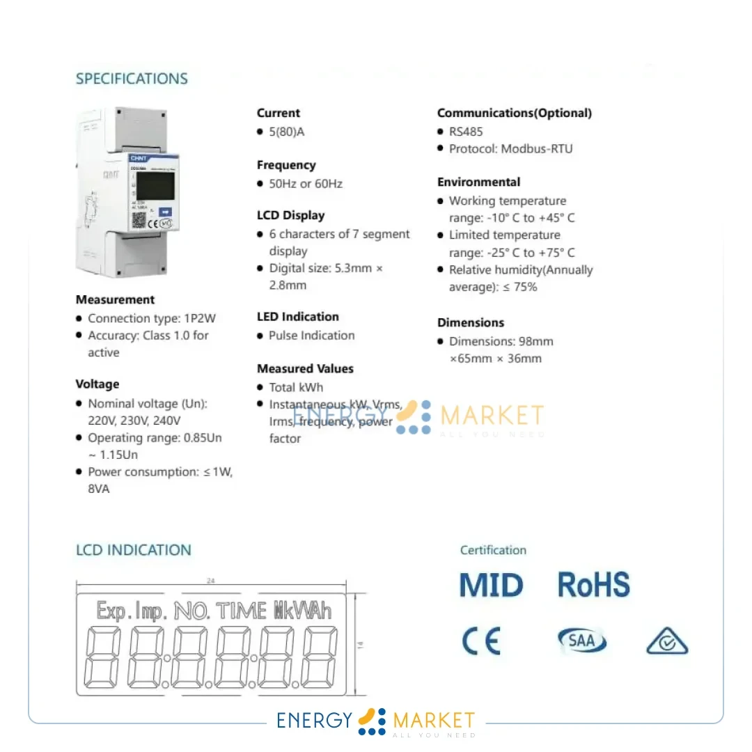 Compteur Smart meter monophasé CHINT DTSU666-S