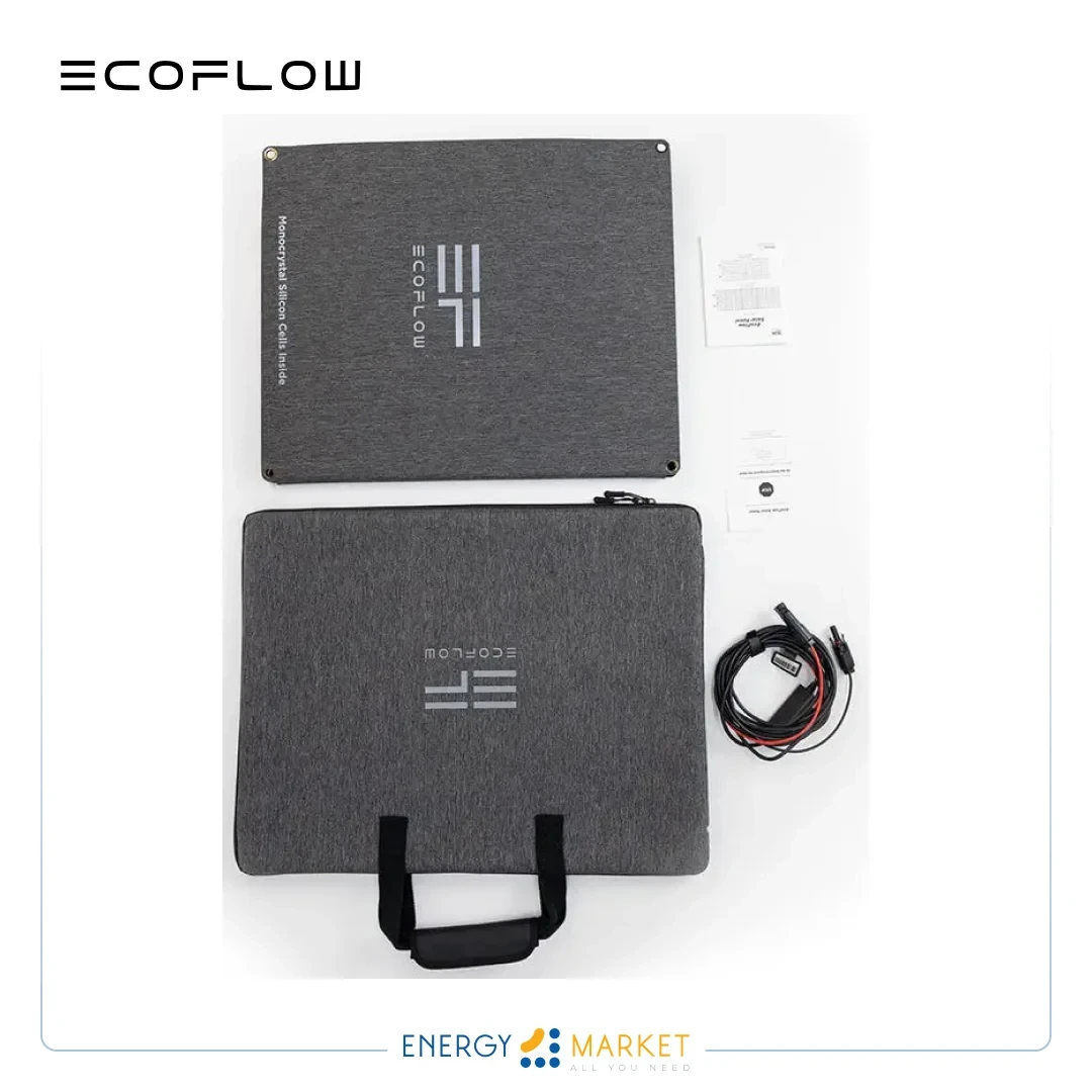 1. Panneau solaire 110W 2. Câble MC4 vers XT60i (branchement stations EcoFlow) 3. Sac de transport