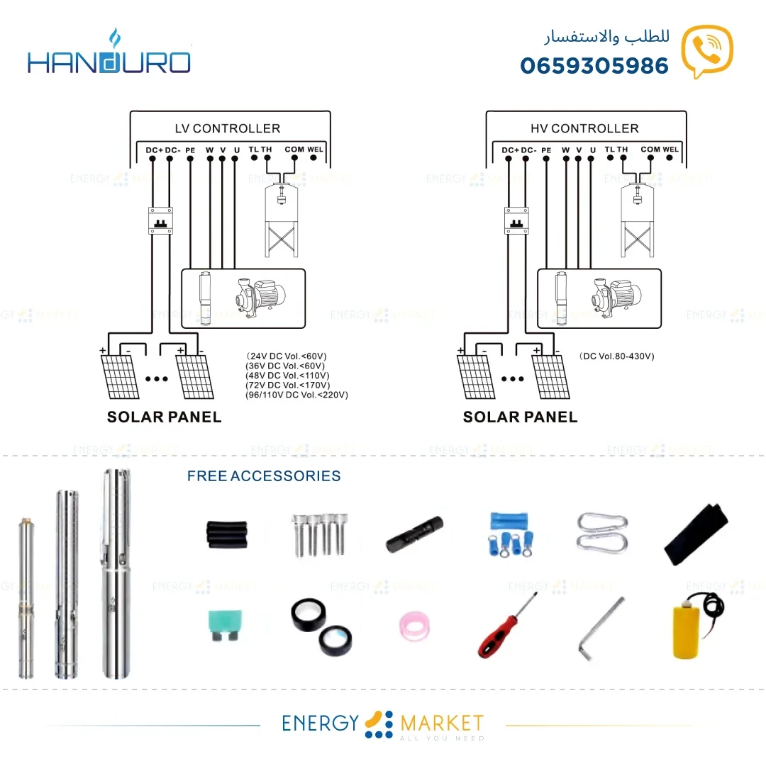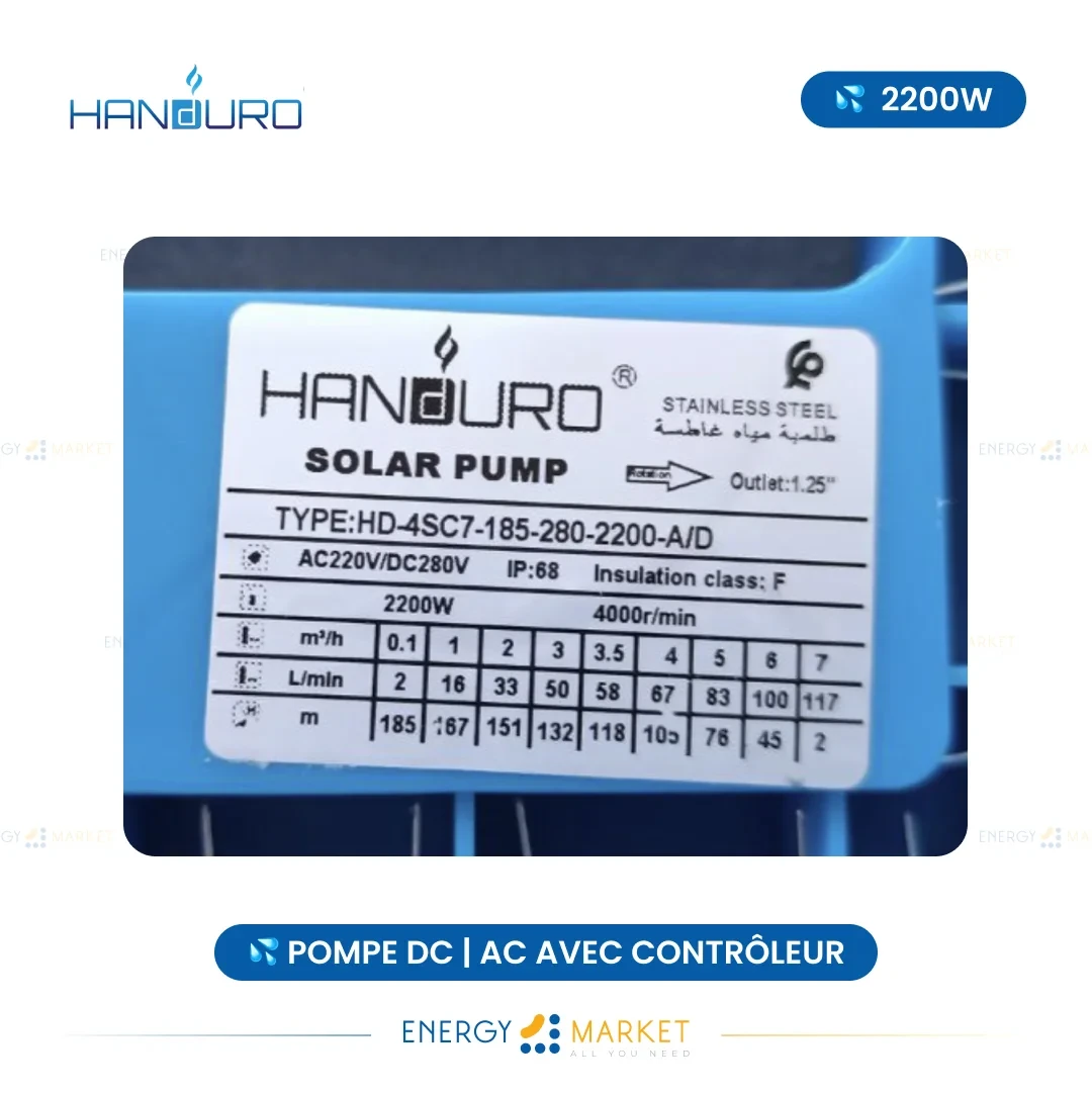 Pompe DC AC avec contrôleur 💦 2200W - HANDURO
