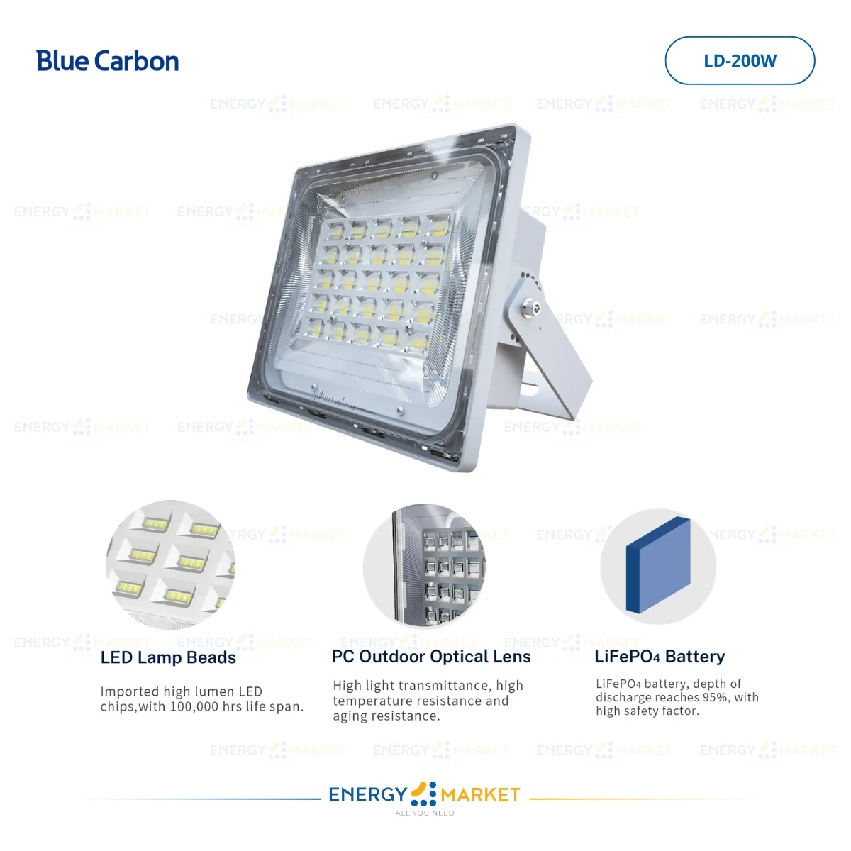 Projecteur Solaire Blue Carbon LD 200W