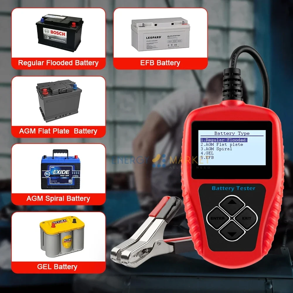 ANCEL BA101 prend en charge le test de toutes les batteries au plomb de démarrage des véhicules à moteur, y compris la batterie au plomb ordinaire, la batterie à plaque plate AGM, la batterie en spirale AGM et la batterie Gel, la batterie EFB, etc.